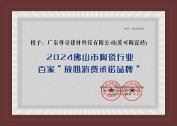 2023年,昊晟集團尊壹企業推出“愛可陶瓷磚”核心品牌,產品全面通過國家強制性3C產品認證、ISO9001質量管理體系認證和ISO14001環境管理體系認證,產品放射性指標符合GB6566-2010國家標準要求,并先后榮獲“陶瓷一線品牌”、“大理石瓷磚十大品牌”“佛山陶瓷百家放心消費承諾品牌”等多項榮譽。