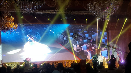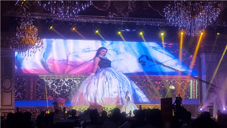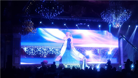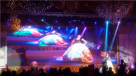年會現場,不僅有象征著金舵起源于海洋文化的“金舵號”輪船和“海上美人魚秀”,還有金舵瓷磚的“新品時裝秀”,以及不同種類、不同花色組成的瓷磚秀場。