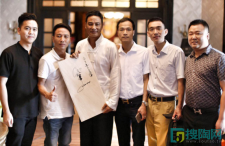 老力仕陶瓷董事長賴國權先生(左二)攜公司高層與香港著名影視巨星、老力仕陶瓷品牌形象代言人任達華先生合影