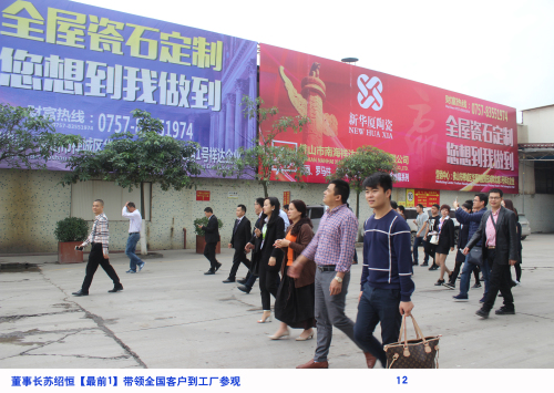 2015年,祥達企業在成立十周年之際,祥達企業就提出了走品牌建設的道路,至今,取得了一定的成效。祥達企業旗下擁有:新華廈、歐享、路宜皇品、恒力、本意、得力兄弟六大品牌,而新華廈陶瓷將是當前及未來重點打造的品牌。所以,公司重點把大磚及常規產品的生產放到恩平工廠生產,把最新研制的高溫瓷畫產品及羅馬柱放到西樵的2個工廠生產。