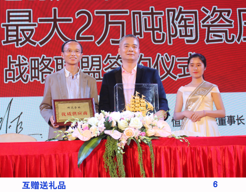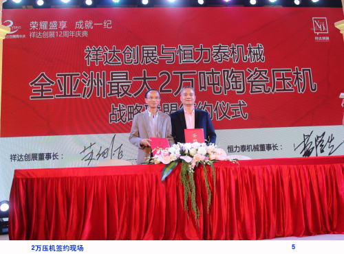 為了抓好產品質量品質,同時我們還購買了2萬噸陶瓷壓機,開辟了全亞洲全新的自動化生產線。為了提高我們在市場的競爭力,我們開發了——大板產品,新建280米寬體窯爐,生產1600X3200mm、1500X3000mm等大規格產品,將這些產品推向市場并占有一席地位。另外,我們計劃年內進行品牌專賣店的建設,計劃建立500個專賣店,以綜合性品牌模式化操作,為經銷商提供更高更有效的發展平臺!