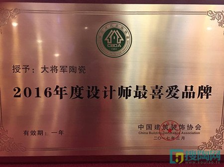 大將軍陶瓷榮膺“2016年度設(shè)計(jì)師最喜愛(ài)品牌”獎(jiǎng)項(xiàng)