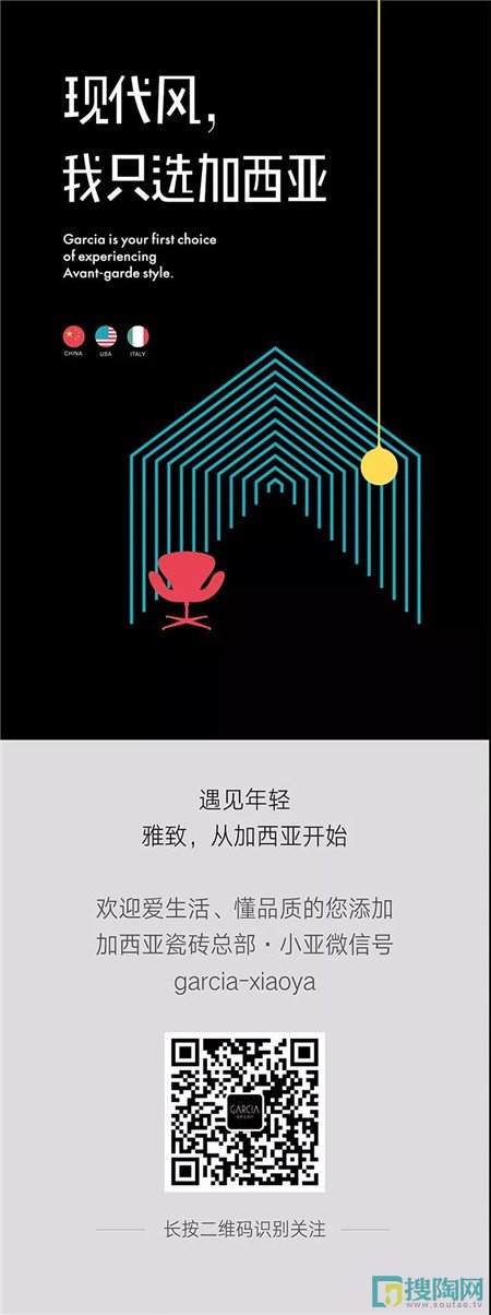 加西亞瓷磚——中美合資企業(yè),以“現(xiàn)代雅致生活”為品牌定位,與美國財富500強企業(yè)莫和克工業(yè)集團(MOHAWK)達成戰(zhàn)略合作,共享其70年國際制磚技術(shù);同時擁有中美意18位國際設(shè)計團隊,生產(chǎn)國際時尚的瓷磚產(chǎn)品,致力于為消費者營造高品質(zhì)的現(xiàn)代生活。