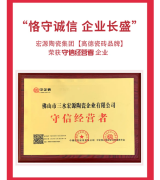 近日,佛山市三水宏源陶瓷企業(yè)有限公司在業(yè)界樹立了新的標桿。憑借其長期以來誠實守信與合法經(jīng)營,公司榮獲了“守信經(jīng)營者”企業(yè)的崇高榮譽。這一獎項不僅是對宏源陶瓷集團經(jīng)營理念的肯定,更是對其在商業(yè)道德和社會責任方面卓越表現(xiàn)的認可,充分彰顯了企業(yè)在市場競爭中的誠信價值與品牌實力。