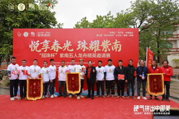 悅享春光,珠耀紫南!3月29日,“冠珠杯”紫南五人龍舟精英邀請賽(下稱“冠珠杯”)在南莊鎮紫南文化旅游區魔鬼賽道上高燃開啟!作為“環兩江”先行區·中國南莊—第三屆“車水馬龍節”之龍舟(草艇)聯賽的首戰,賽事現場河岸人潮沸騰吶喊,槳影翻飛間龍舟文化之美與力爭上游的精神共舞,綻放美好鄉村新風貌。
