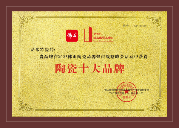 榮耀時刻,熠熠生輝,5月10日,在備受矚目的2025佛山陶瓷品牌強市戰略峰會上,薩米特瓷磚憑借創新的產品矩陣,卓越的品牌影響力,成功攬獲“陶瓷十大品牌”稱號。這一榮耀的獲得,不僅是對薩米特瓷磚實力的權威認可,更是凸顯出薩米特瓷磚在建陶行業的標桿地位。