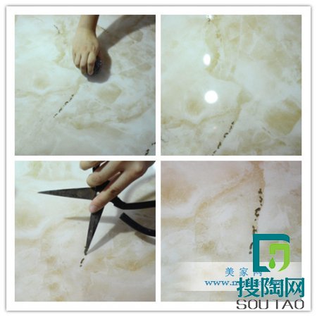 工作人員用鋼絲刷來回擦拭瓷磚表面,在光照下查看并無明顯劃痕。工作人員又用剪刀一端在瓷磚表面來回刮擦,瓷磚表面并無磨損脫落跡象。