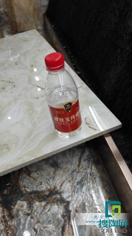 小編把一個水瓶放在瓷磚灑了水的瓷磚上面,水瓶依然紋絲不動,充分體現了它的防滑性能。