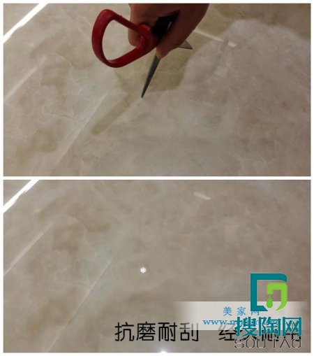 刮痕是瓷磚最怕出現的情況,尤其是一款能夠用在背景墻上的產品,小編用隨身攜帶的剪刀在其表面來回滑動,發現這款產品表面并沒有留下任何的刮痕,證明這款產品十分耐用。