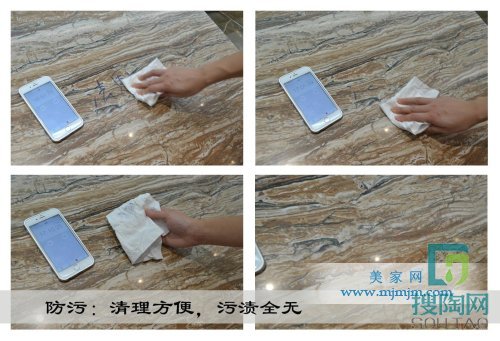 為測試法恩莎瓷磚臻·海紋玉的防污性,小編用油性筆在瓷磚表面寫上“法恩莎”字樣,靜待幾分鐘后,用紙巾輕輕擦拭就能把字跡擦凈,瓷磚上表面污漬全無,只在紙巾上留下污漬。