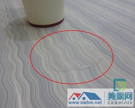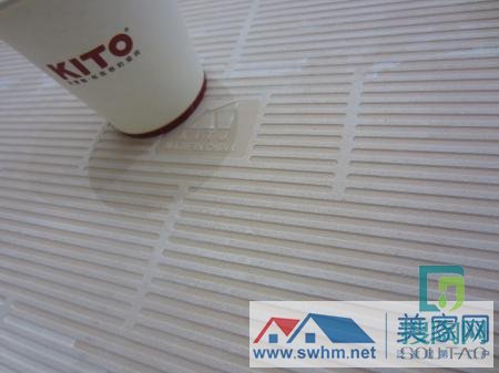 小編點評:測評員在磚體背面倒上白開水,2-3秒后,水迅速滲進磚體,而當測評員把正面用紙巾擦拭之后,倒上水的時,水凝成一團。從中可以得出結論:“水沐年華”的吸水率是非常高,在衛浴空間鋪設是沒有難度的。