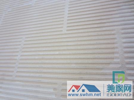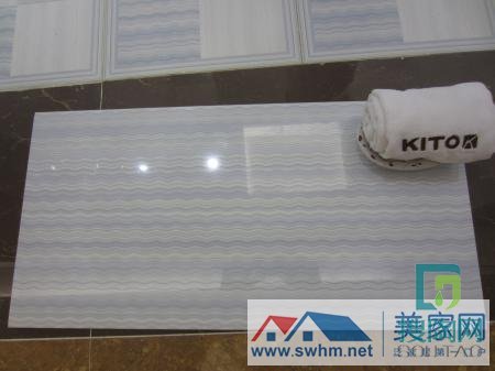 小編點評:“水沐年華”正面看釉面光滑,淡藍色條紋與白色條紋以波浪形排布在磚面,清晰雅致,瞬間感受大海那種恬靜而又美好的視覺享受,釉面邊緣處,用手摸有凸起來的感覺,金意陶工作人員告訴我們,這樣上墻的立體效果會更加強烈,而“水沐年華”的背面是由條形紋理的設置。對“水沐年華”初步印象即為:美觀、大方、恬靜、舒適。