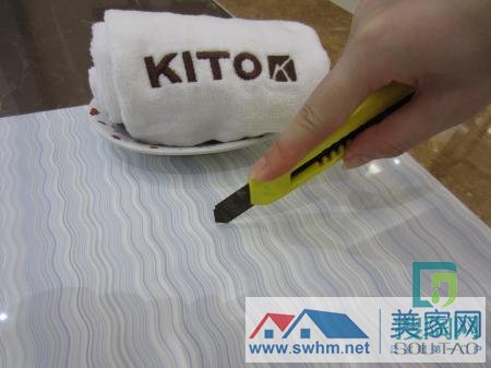小編點評:測評員用堅硬的工地專用刀試著刮了一下“水沐年華”釉面,很滑,再來回用力刮,也沒有見到刮痕。