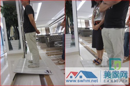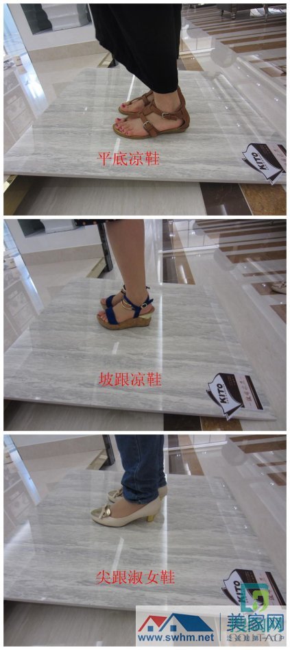 >>>溫馨提示:將瓷磚放置在一個有高度的地方,讓瓷磚與地面形成一定的傾角,站在整塊磚的中間,看看是否很容易下滑。