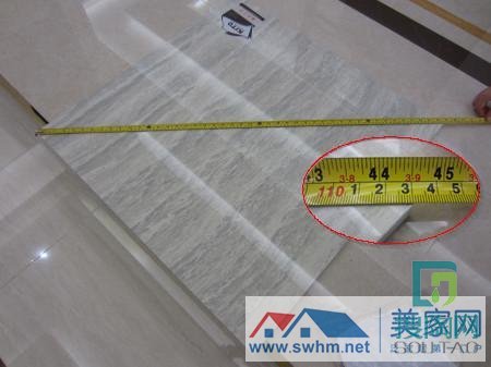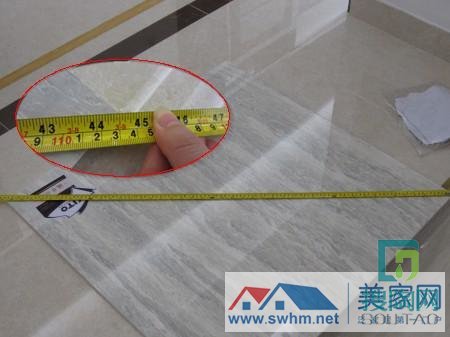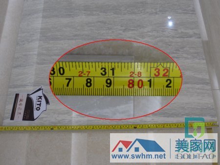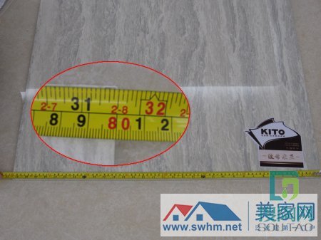點評:測評員用普通的工地用尺細(xì)心測量著“波西米亞”的尺寸,符合800*800mm規(guī)格,鋪設(shè)起來也方便放心。