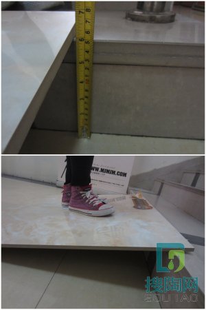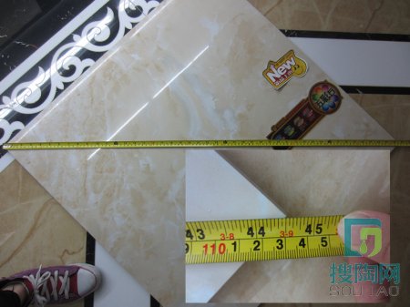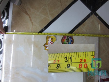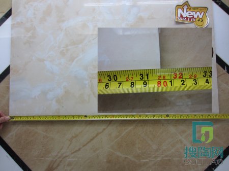經過測量,得出瓷磚的尺寸,邊長:800㎜,厚度為9.9mm。