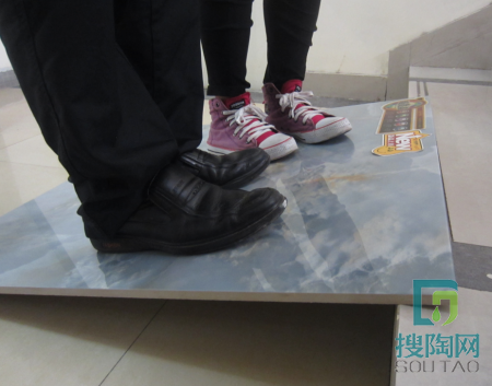 美家小編點評:工作人員和我站上去,瓷磚還是穩穩當當的,我雙腳來回挪動,還是明顯感覺到有很強的摩擦力。微晶石產品的承重性也非常好,如圖所示(ps:工作人員體重145斤,我體重109斤)