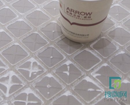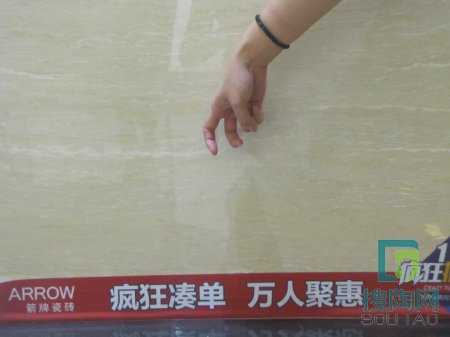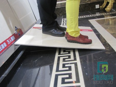 【測評相關信息】 時間:2014年5月12日上午 地點:廣東佛山順德樂從鎮大墩工業區箭牌瓷磚營銷中心 測評專員:搜陶網編輯 阿珊&阿英 文字編輯:搜陶網編輯 阿英 測評產品:碧玉流砂 測評項目:外觀、耐磨性、硬度、吸水率、規整度、防滑性、防污性、抗壓承重性