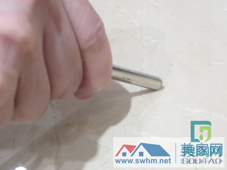 隨身帶著鑰匙,就用尖的一角狠狠地刮了一下,本想會留下痕跡,竟然讓小編失望了。看來,世紀米黃的硬度不可小視。