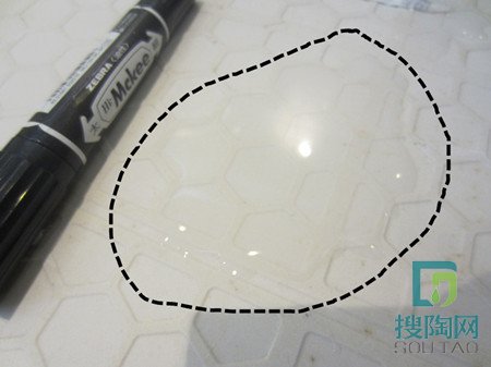 小編分別在瓷磚的正反兩面的磚面倒上清水,靜置若干分鐘后,看水珠是否擴(kuò)散滲透。