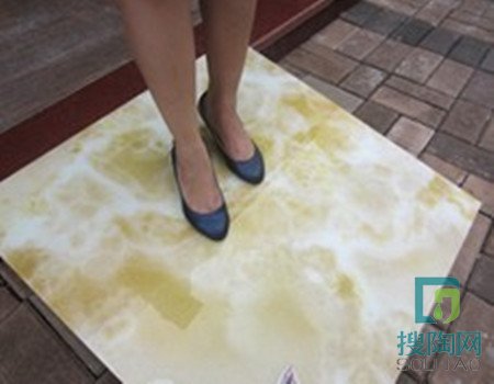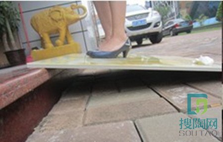 防滑及抗壓點評:測評員先在評測瓷片上倒些水,接著把磚斜放在臺階,從而與地面成一定的斜面。測評員穿著高跟鞋在有水的瓷片上來回走動,發現瓷片仍然很沉穩。微晶石光滑華美,使人直觀感覺它的耐滑性不高,上面一層剔透的晶體也使人感覺比較容易破碎。評測實驗發現,在不斷創新的技術工藝上,微晶石的防滑和耐壓功能也是蠻不錯的。