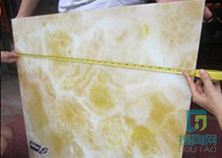 規整度點評:測評員現場用尺子測量,長度和寬度均為800mm。瓷磚規格的精準度關系到鋪設效果,為了保證效果和減少浪費,對瓷磚的精準度要求也非常高。有意思的是,測評員還特地測量一下瓷磚微晶層的厚度,發現晶體厚度為2.5mm,這種厚度在行業中罕見,而且,晶體表面無任何氣泡。