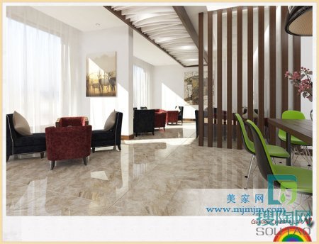3、在選購客廳的磚時,選磚要參考房間的平方數來計算。如30平方米以下的可選用邊長為45cm或以下單位的;大于30平方米的可用邊長為45-60cm的。這一點值得注意,因為客戶進到瓷磚店時會沒有家里的空間感,會影響判斷。