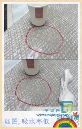 吸水率是指瓷磚背面的滲水效果,影響瓷磚的使用壽命,是瓷磚的一項重要評測方面。經現場測評人員向瓷磚背面傾倒水一段時間后,沒有水滲入瓷磚,這說明格仕陶這款超平高清大理石瓷磚細密,不易泛潮,產生形變脫落,影響美觀。