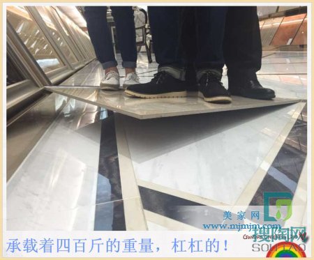 瓷磚的承重性能很好地說明瓷磚的硬度與結實程度。以140斤的成年男子體重踏上傾斜45°角的臺階上,瓷磚絲毫無損。再增加一名120斤的成年男子和100斤的成年女子,瓷磚承重完全沒壓力,無出現破損與斷裂的現象。