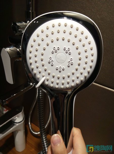 小編在現場體驗了這款奧拉系列水龍頭的出水效果,用手觸及水流,柔和不刺激,沒有像其他水龍頭出水那樣對手部有擊痛感。水流經過網罩時會被切割成大量中間夾雜著空氣的細小水柱,使水不至于四處飛濺。