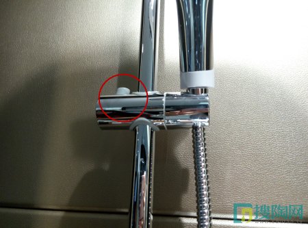 手持花灑架傍邊有個按鈕,用來調節(jié)手持花灑架的高度,以滿足大人和小孩對手持花灑不同高度的需要。這設計真貼心!