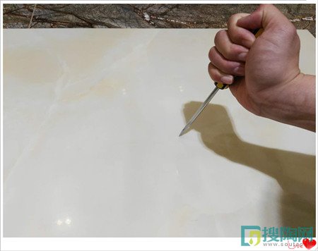 小編先拿起螺絲刀用力在這款瓷磚表情來回滑動后仔細觀察,瓷磚表面同樣沒有留下任何的痕跡,如實說是,這款特地羊脂玉石瓷磚的耐磨性夠好。