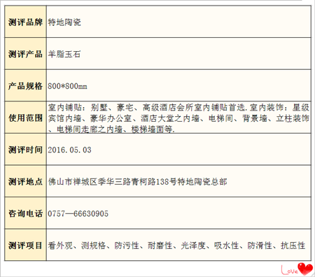 【測評總結】:小編在對特地的這款羊脂玉石瓷磚進行測試,無論是在外觀、規格、防污性、耐磨性、光澤度、吸水性、防滑性、抗壓性這幾方面進行測試,特地羊脂玉石瓷磚都是完美過關,光澤度適中,視覺上既舒適又符合中國人的審美習慣,適合不同風格、不同格調的空間設計,隨時能為設計師提供畫龍點睛的創作靈感。