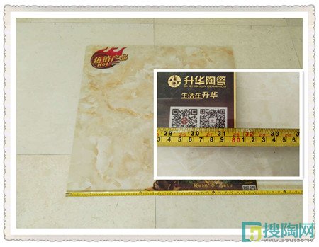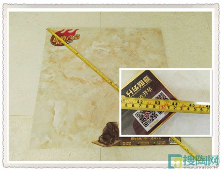瓷磚尺寸不標準的話就會容易造成浪費材料,這款升華金剛石Ⅲ代瓷磚的規格是800*800mm,小編就在現場用軟尺對這款瓷磚進行測量,可見長為800mm,寬為800mm,對角線約為1131mm,符合標準。