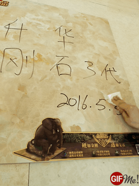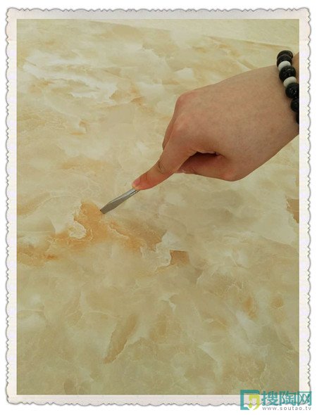 這款富含金剛因子的瓷磚是否真的那么耐磨呢?于是,小編就拿起螺絲刀用尖銳的部分用力來回刮瓷磚的表面,發現瓷磚表面并沒有出現任何的刮痕,看來這款升華金剛石Ⅲ代瓷磚是非常耐磨的。