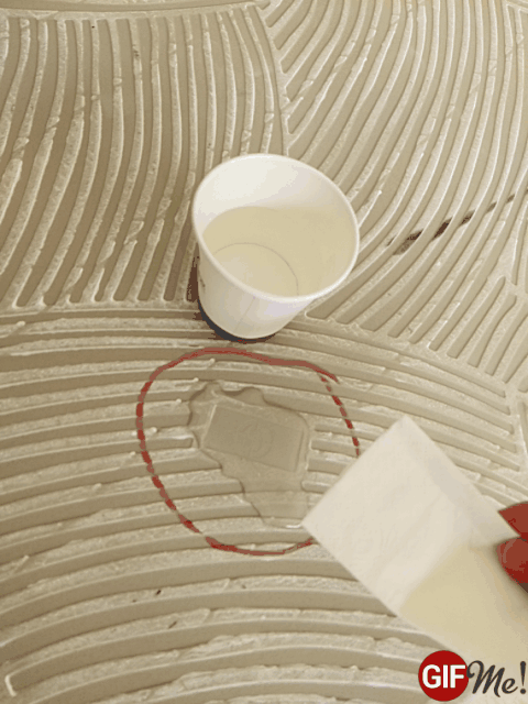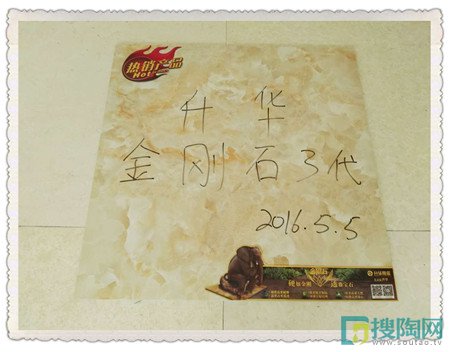 升華金剛石Ⅲ代瓷磚是高度晶化的釉面能夠有效的防止污水的滲入,為了證實所言屬實,小編將瓷磚翻磚到背面進行測試,在瓷磚背面畫了個圈,在圈內倒入一點水,靜看幾分鐘后水并沒有向圈外擴散的跡象,然后把紙巾放下,圈內的水很快就被紙巾吸收,事實證明這款瓷磚不易吸水。