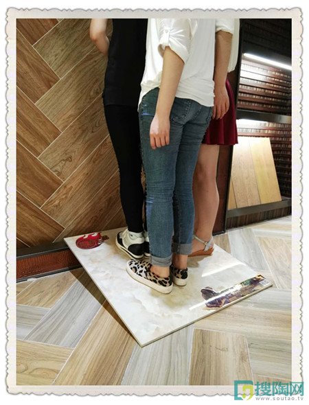 抗壓性好的瓷磚也是產品質量的保證,所以當我們看這款瓷磚的質量好壞當然是要測試一下它的抗壓程度如何了。在測試現場,美家網測評員親自站上傾斜的瓷磚上面,觀察瓷磚依舊沒有絲毫破裂的現象,然后小編又讓兩位工作人員站上去,觀察瓷磚還是結實沒有任何異常現象,這說明了瓷磚的抗壓性verygood!